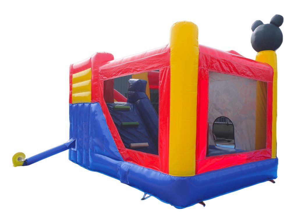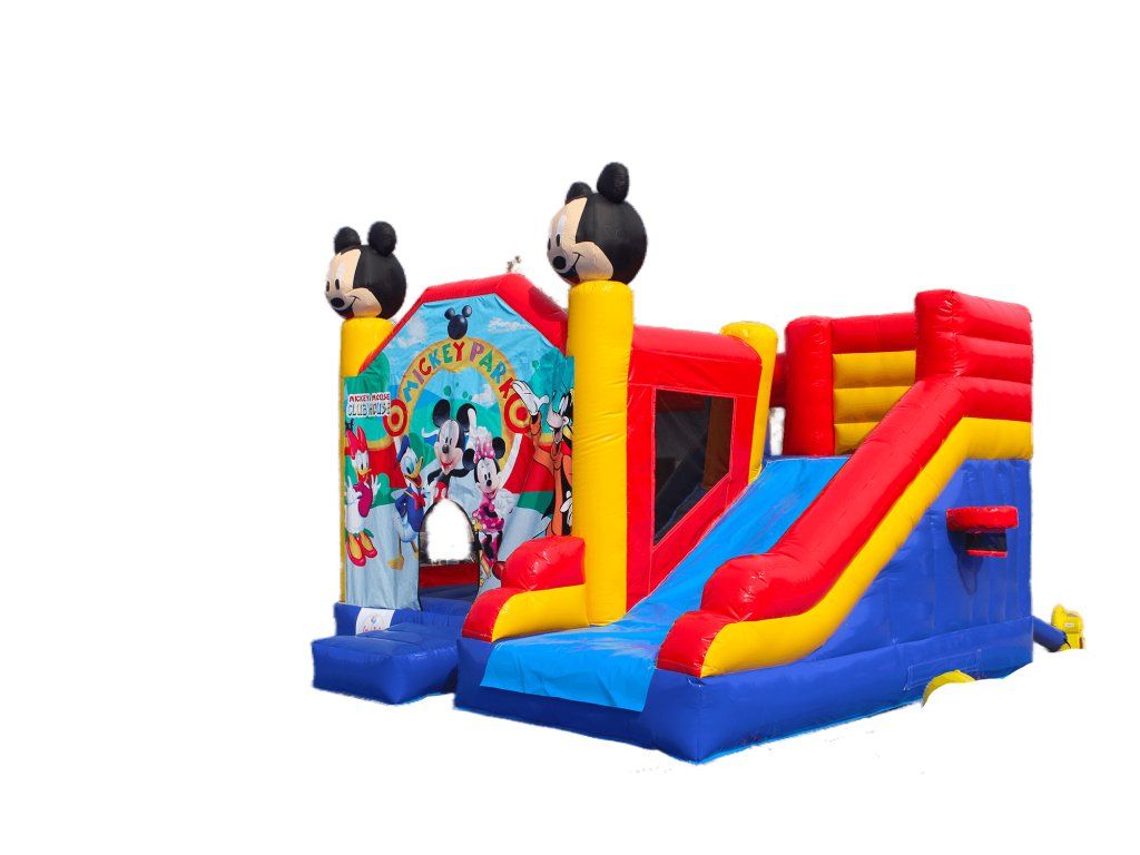 Skákací hrad Mickey - Park je vyroben z nejkvalitnějšího PVC materiálu, který je voděodolný i ohnivzdorný a při dodržení všech předpisů je takřka nerozbitný.